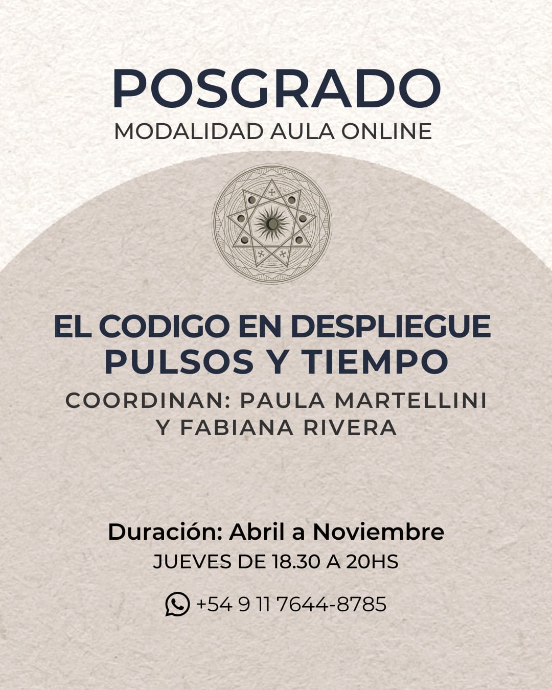 Un espacio grupal dirigido a egresadxs que deseen investigar cómo se manifiesta, despliega y actualiza el código natal, afinando la percepción del pulso de los ciclos, tránsitos y progresiones.